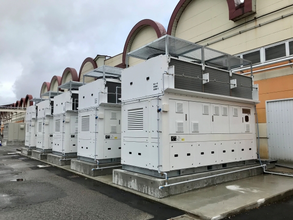 ガスタービンコージェネレーションシステム導入 都市ガスを用いて発電し、その際に発生する蒸気を工場の製造工程や冷暖房などの用途に有効活用するシステム |
